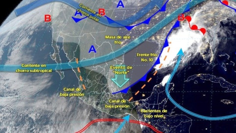 La masa de aire ártico asociada al frente frío provocará un evento de Norte intenso, con rachas de viento de hasta 110 kilómetros por hora en las costas de Tamaulipas y Veracruz, extendiéndose gradualmente hacia el istmo y golfo de Tehuantepec. También se prevé oleaje elevado de hasta cinco metros en el litoral del golfo.