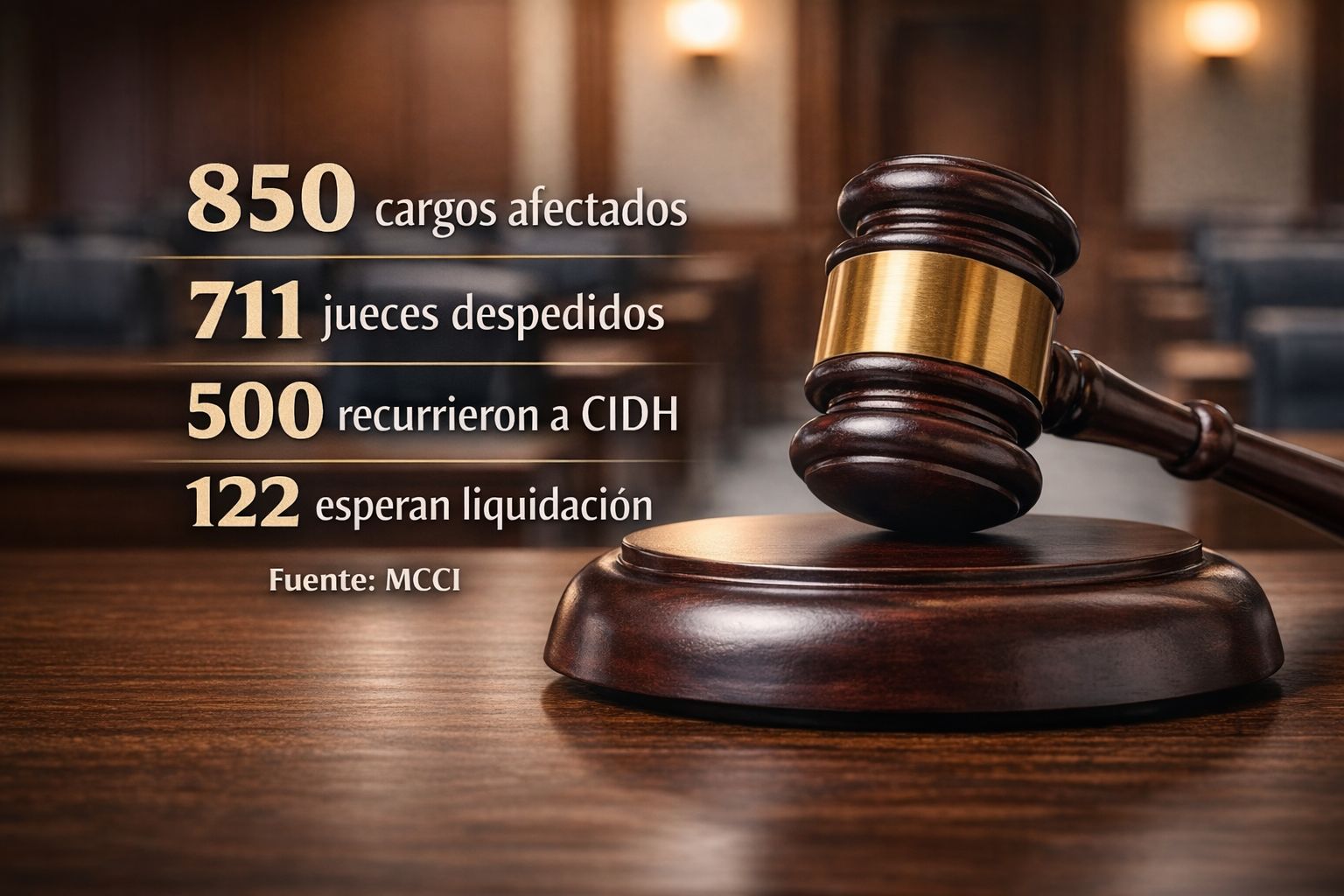 De acuerdo con datos difundidos por Mexicanos Contra la Corrupción y la Impunidad (MCCI), alrededor de 850 cargos fueron impactados; 711 juzgadores quedaron fuera de sus funciones; 122 aún esperan el pago correspondiente y cerca de 500 ex integrantes del Poder Judicial recurrieron ante la Comisión Interamericana de Derechos Humanos.
