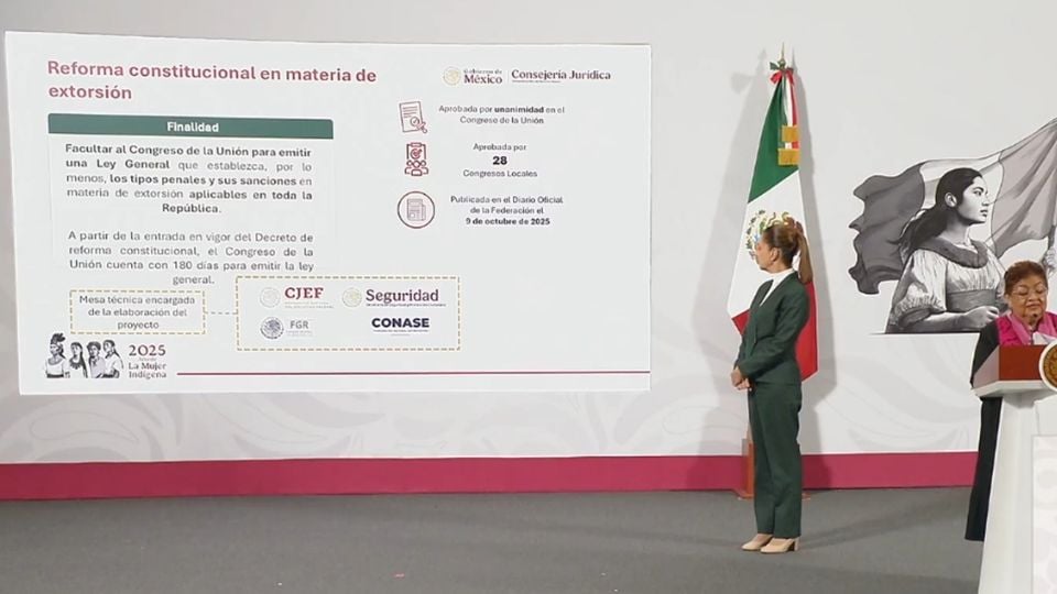 La presidenta de México, Claudia Sheinbaum Pardo, anunció que este jueves 17 de octubre enviará al Congreso de la Unión la iniciativa de leyes secundarias para reforzar la Estrategia Nacional contra la Extorsión. Estas normas complementan la reforma constitucional al artículo 73, aprobada por unanimidad en septiembre, que faculta al Estado para legislar en materia de extorsión.